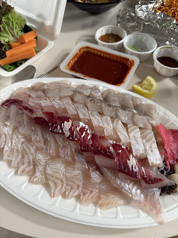 언니와 조카들이 집에서 자고 가는 날이었는데요. 며칠 전부터 계획했던 회를 먹었습니다. 근처에 ‘방아깐’이라는 정말 맛있는 횟집이 있거든요. 전날부터 예약하고 픽업해서 회랑 양배추무침만 먹었어요. 대신 밥은 한 숟갈도 안 먹었습니다! 회는 고단백 식품이라 다이어트에도 좋다고 하더라구요. (뿌듯)